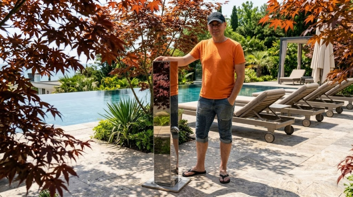 Высота колонны ногомойки 110 см. Размер 180х180 мм.