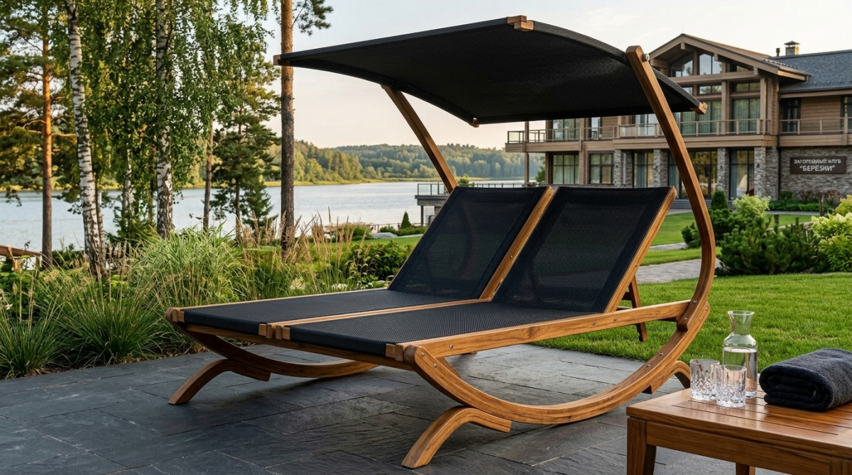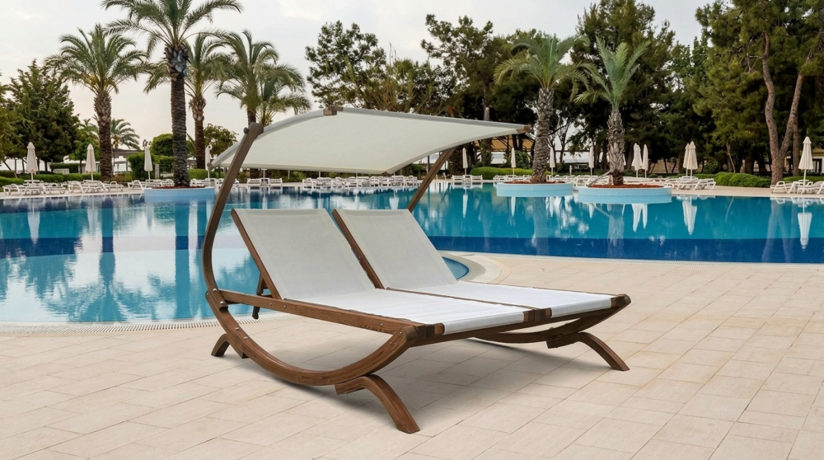 Двухместный шезлонг-лежак серии Экстра - эксклюзивная новинка из влагостойкой фанеры и лиственницы. Модель оборудована козырьком, что является дополнительным преимуществом для комфортного отдыха.