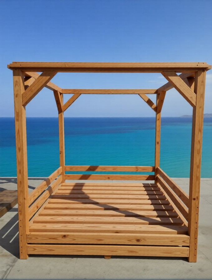 Качественная древесина обработана специальной пропиткой, защищающей её от негативных погодных явлений, солнечных лучей, насекомых.