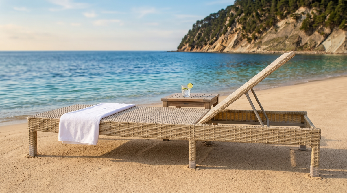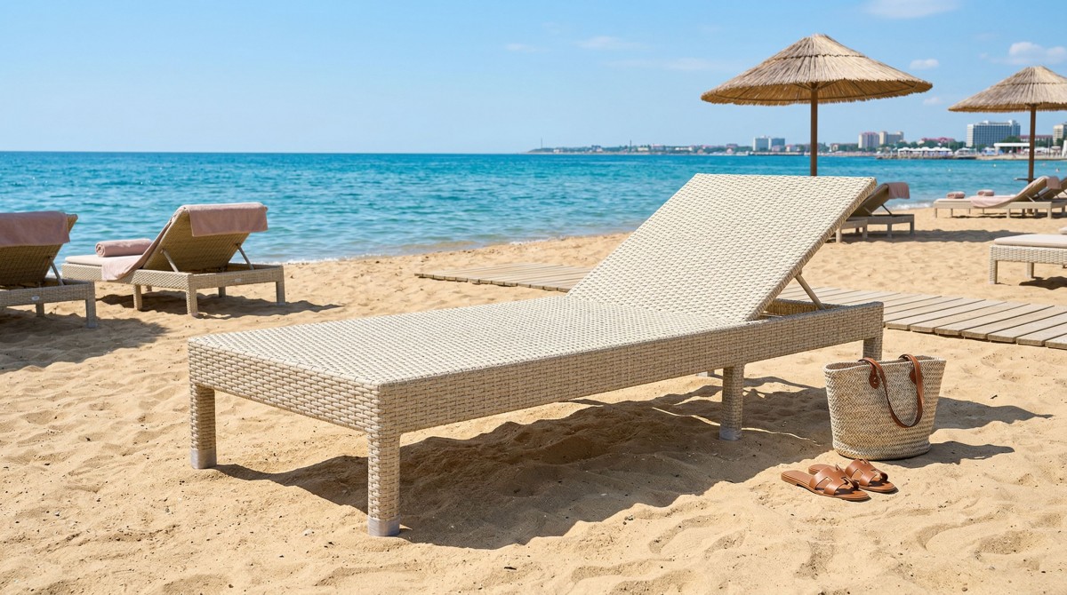 Шезлонг пляжный из искусственного ротанга. Лежак для пляжа. Любой цвет ротанга на выбор при заказе от 11 шт. изделий.