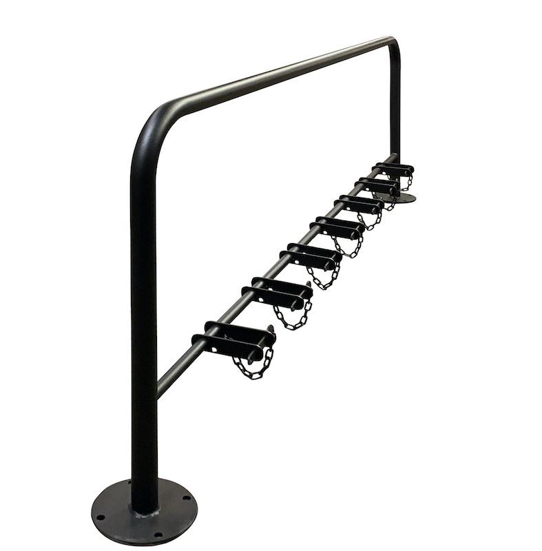 Парковка для самокатов «Драйв» пригодится как детям, так и взрослым. Каждое парковочное место оснащается цепью с замком, чтобы грабитель не смог угнать транспорт. Может покупаться для дворов с многоквартирными домами, торговых центров, учебных заведений. Если нужно, цвет товара меняется по каталогу RAL.