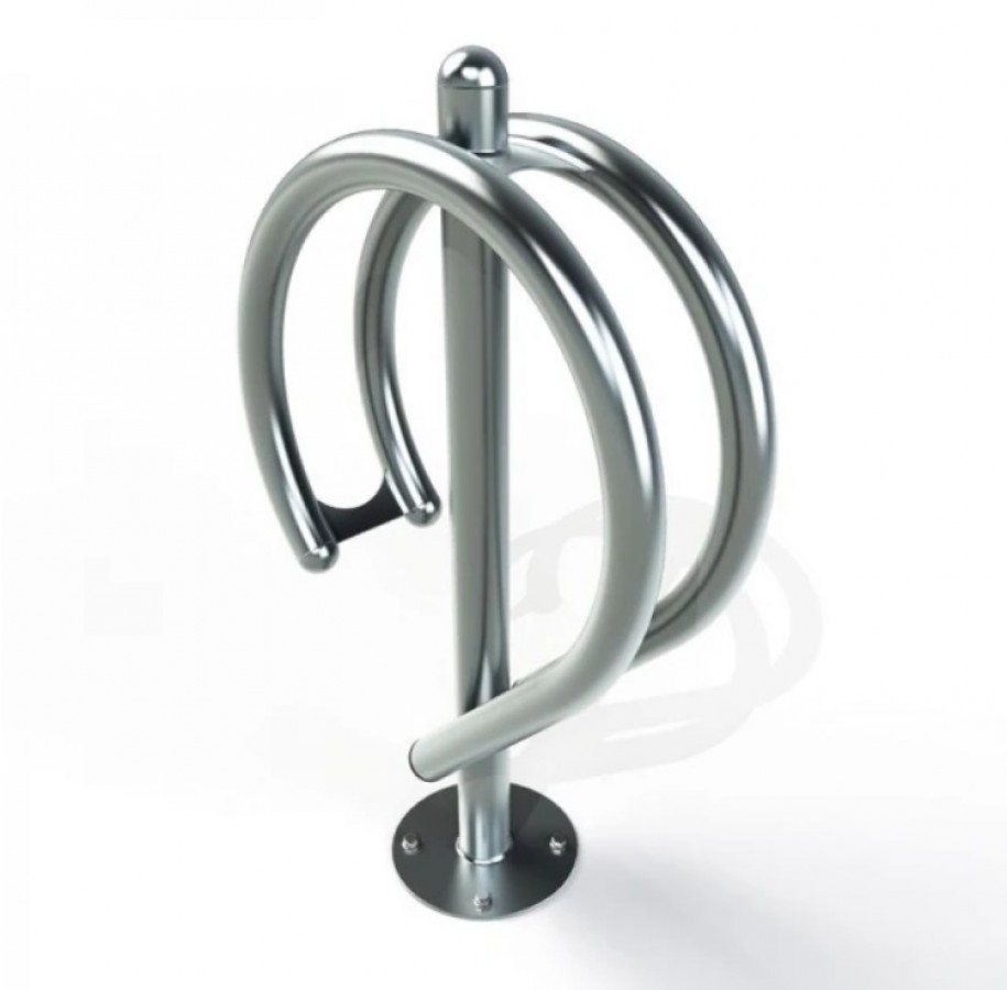 Велопарковка «Два вопроса» выглядит стильно, занимает минимум места, позволяет надежно припарковать велосипед. Подойдет для установки на узких улицах, возле маленьких магазинов. При необходимости расцветку можно менять по каталогу RAL, чтобы товар лучше вписался в ландшафтный дизайн.