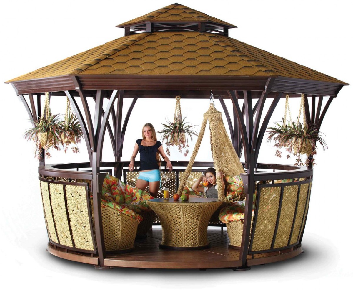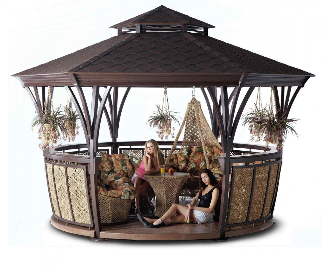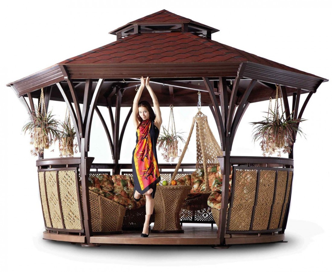 Беседка будет комфортна для отдыха, для работы с компьютером, для чтения книг. А если у Вас соберется много гостей – отличным местом для застолья.