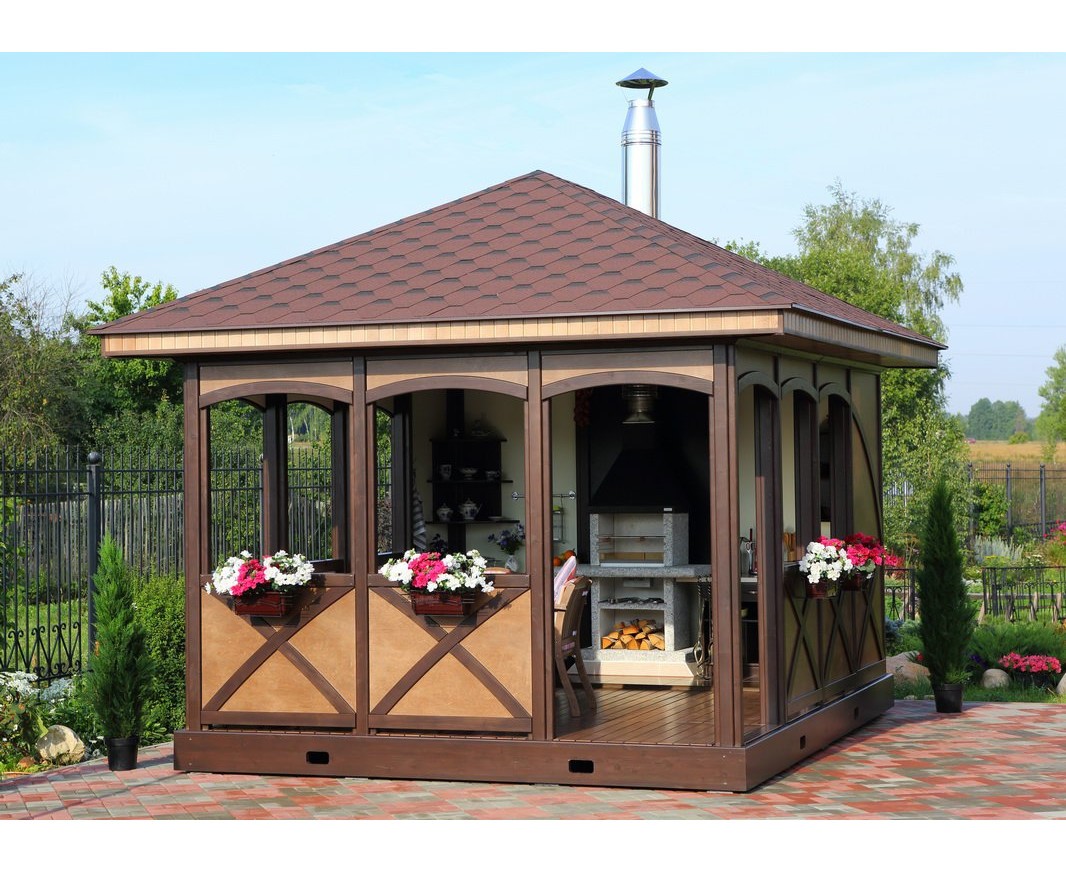 Стоимость беседки рассчитывается без барбекю и дымохода.